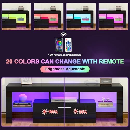 【Modern LED TV Stand】This LED TV stand features built-in LED lights,You can use the remote control to adjust the color and brightness of the light.16 light colors and 4 light changing modes.