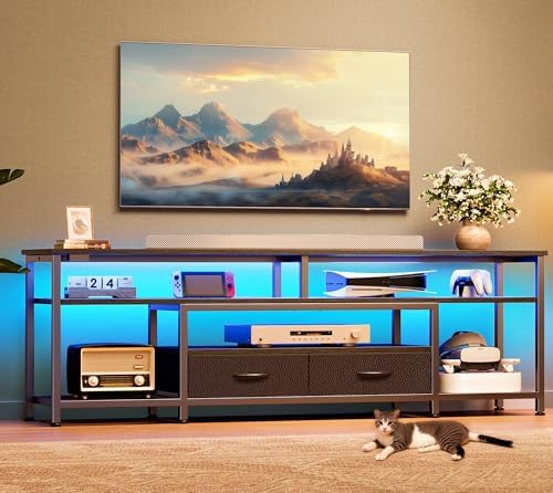 【Inspiring LED Lightings】Elevate your viewing experience with our RGB LED lightings on the TV console table. Featuring 12 scene modes, 5 adjustable speed levels, and 3 brightness settings, you can effortlessly create the perfect ambiance using the smart controller. Or dive into a palette of over 60,000 colors, set timers, or sync the lights with your music and microphone through our easy-to-use smart phone app