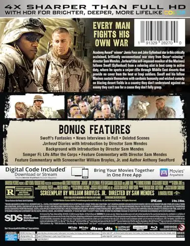 - Includes 4K UHD, Blu-ray and a digital copy of Jarhead (Subject to expiration. Go to NBCUCodes.com for details.)
