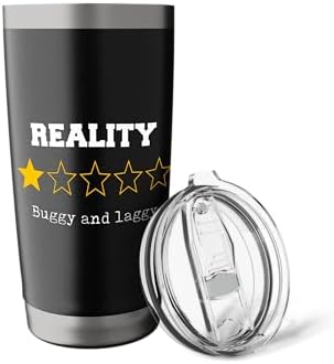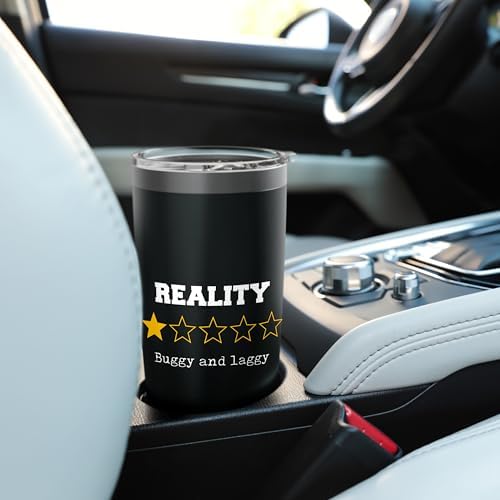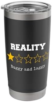 Perfect for gamers, tech lovers, and anyone who feels like life is just one big glitch, this design features the word “REALITY” followed by a one-star review and the phrase “Buggy and laggy.”