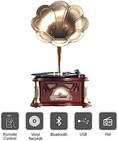 [Elegant Home Decoration]: The Gramophone Phonograph Turntable Vinyl Record Player can be used in hotels, clubs, bars, yoga studios, home or office decorations, or souvenir collections, or holiday gifts. Retro art style design, inherit the classic restore the old times.