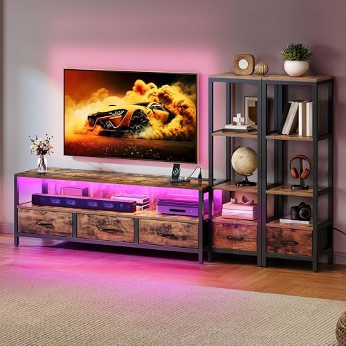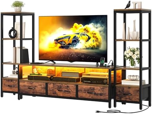 LED TV Stand with 4 Tier Industrial Bookcase & Power Outlets