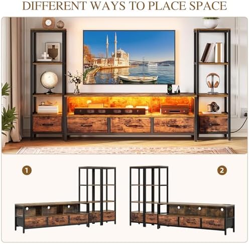 Flexible Display Center: Equipped with flexible 4 shelf bookshelf that can be placed on one side or both (left and right), our entertainment center is ideal for displaying decor, books, or vases, offering a practical and versatile solution for your space